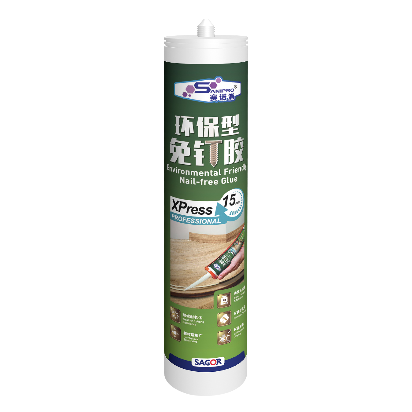 賽諾浦?環保型免釘膠,是一種硅烷改性單組分結構密封膠,適用于多用途的高強度彈性粘接,室溫固化后初始強度、抗張強度、粘接強度高,抗溫差能力強,與基材柔性連接,且綠色環保無污染,通常用于裝修及維修中需粘結的各種場合。